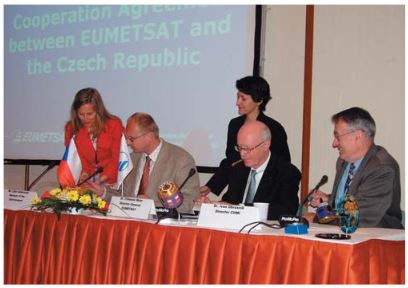 Podpis smlouvy o přistoupení ČR k EUMETSATu formou spolupracujícího státu dne 31. 5. 2004.